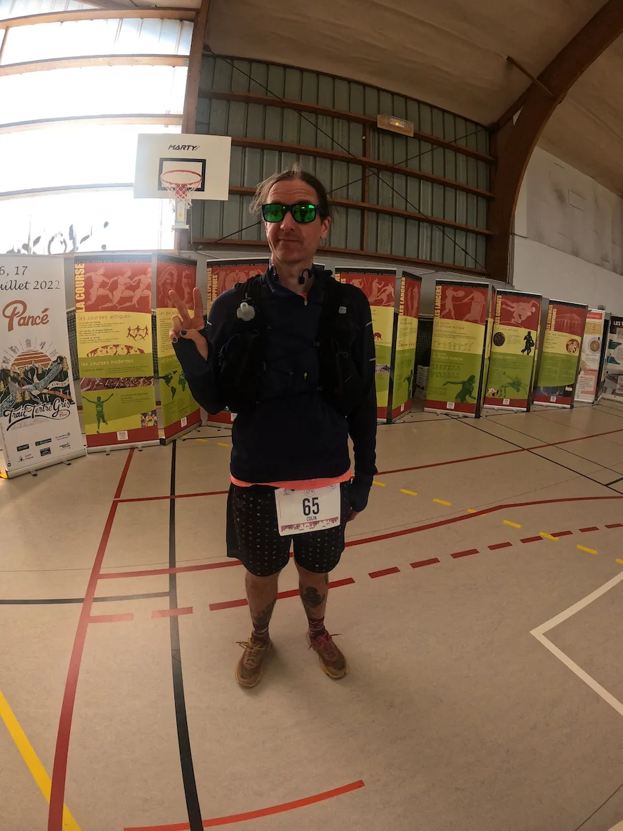 J'alterne donc tranquillement marche et running, et à 3 km de la fin je sens une ampoule exploser sous le pied — ça surprend, et ça pique. Après ça, il m'était plus douloureux de marcher que de courir, donc je termine en trottinant doucement, avant de retrouver une bonne forme à 1km de la fin, et de faire un dernier km à 5:50 (oui, pas ouf, mais après 83 km… c'est pas mal).