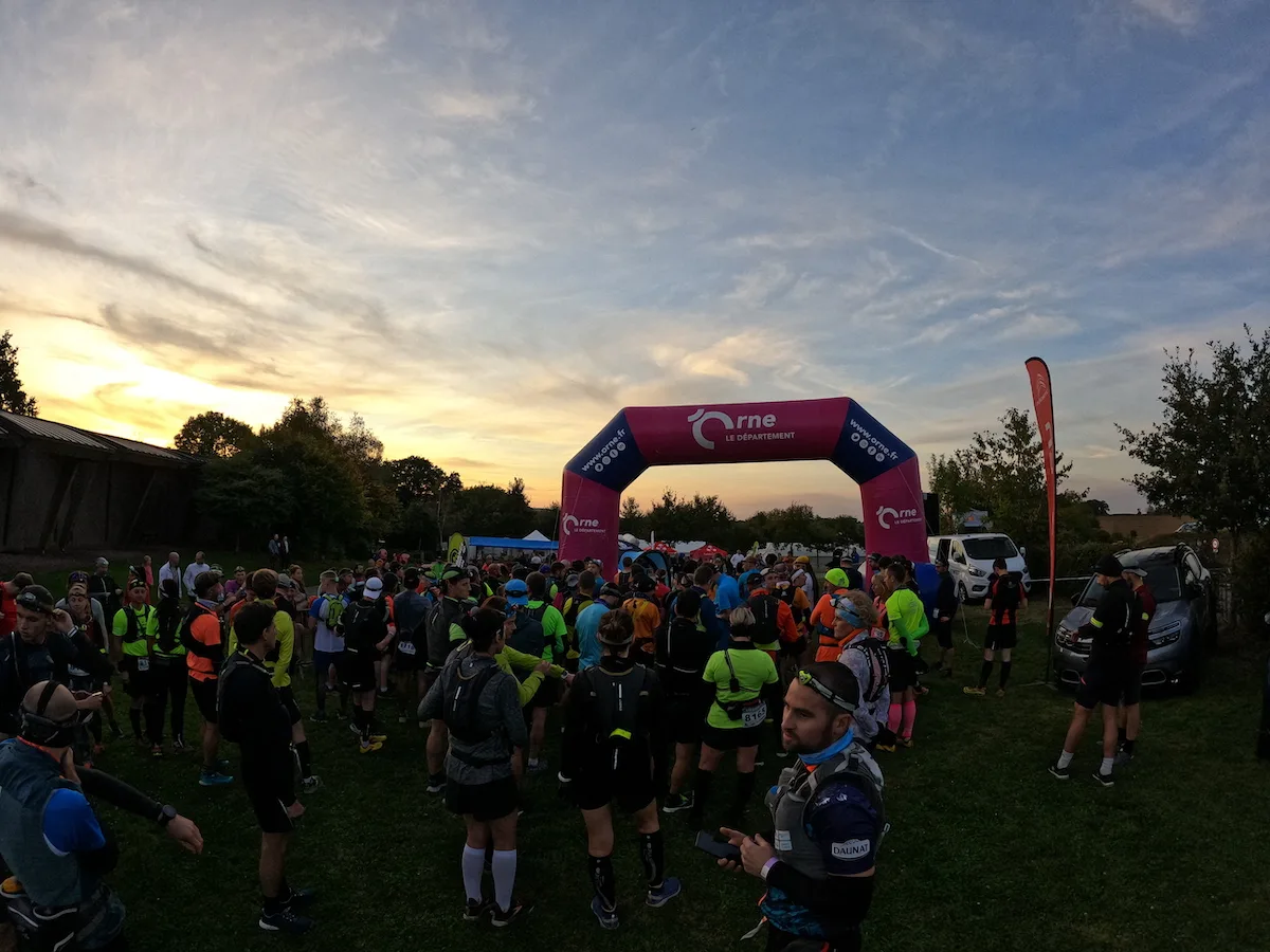 Tout le monde vous le dira, courir de nuit, c'est quand même une expérience à part. Un véritable cocon, les yeux perdus dans le halo de la frontale. À deux, la course passe un peu plus vite, et on se retrouve en queue de peloton, où il faut l'avouer l'ambiance est plutôt décontractée : clairement la plupart des concurrents ici sont venus pour le plaisir. On discute, on rigole, un traileur local de 60 ans m'offre une gorgée de Calvados que je ne peux pas refuser.